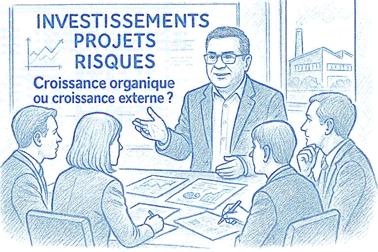Accompagnement stratégique des dirigeants : Conseil sur les choix d'investissement et de désinvestissement, structuration des plans de financement, et aide à l'élaboration de stratégies de croissance externe (M&A) ou organique.